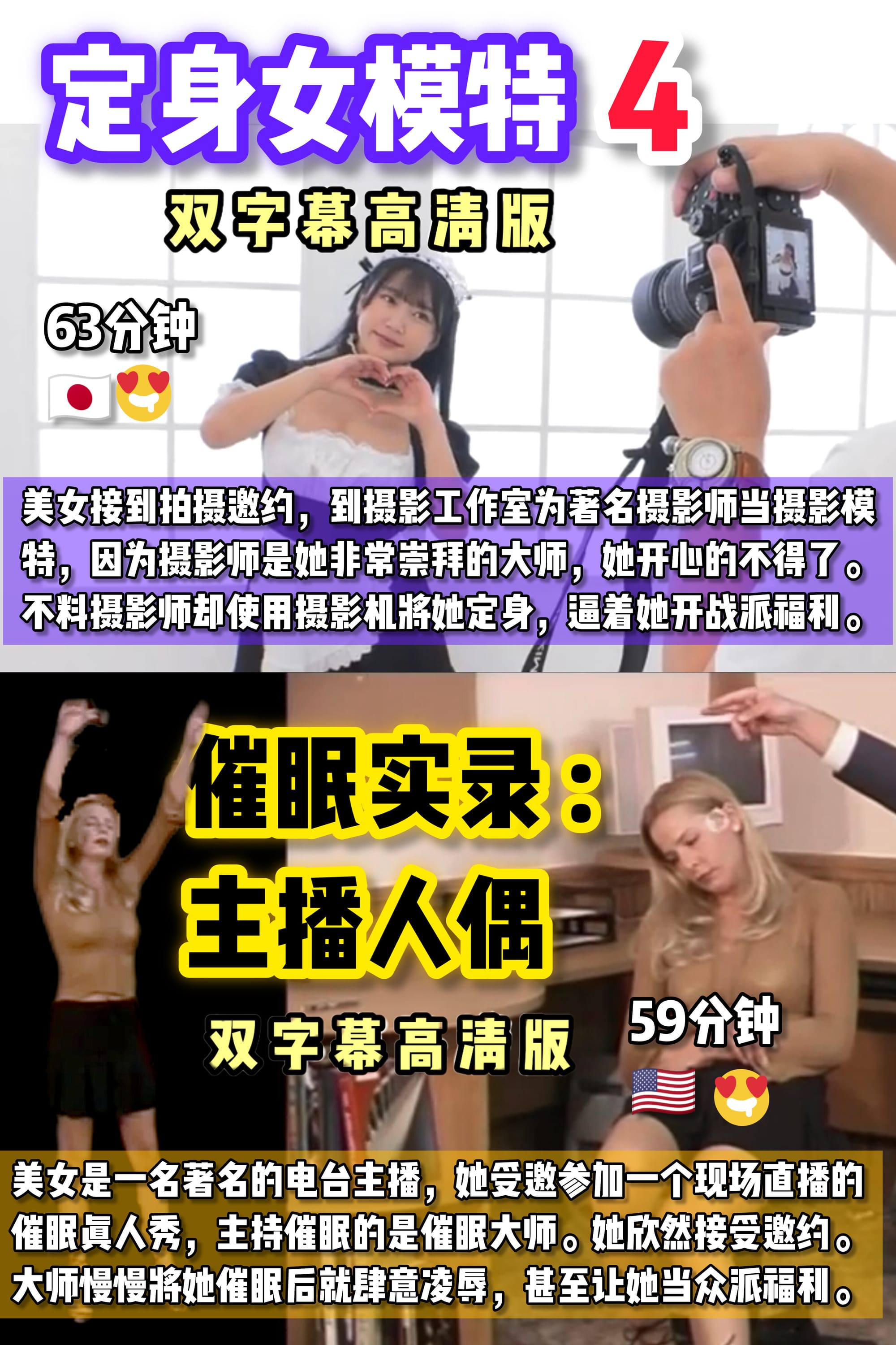美女是企业的最高决策人,超 级女强人,个性果断独裁,决 策时从不顾及他人感受。男人 常年受到美女无理谩骂,却敢 怒不敢言。他在暗网找到催眠 手机打算报复。美女接听后催 眠音波迅速作用,让她陷入深 度催眠,变成男人的玩物,随 时与他一起开心作战派福利。 (162分钟)