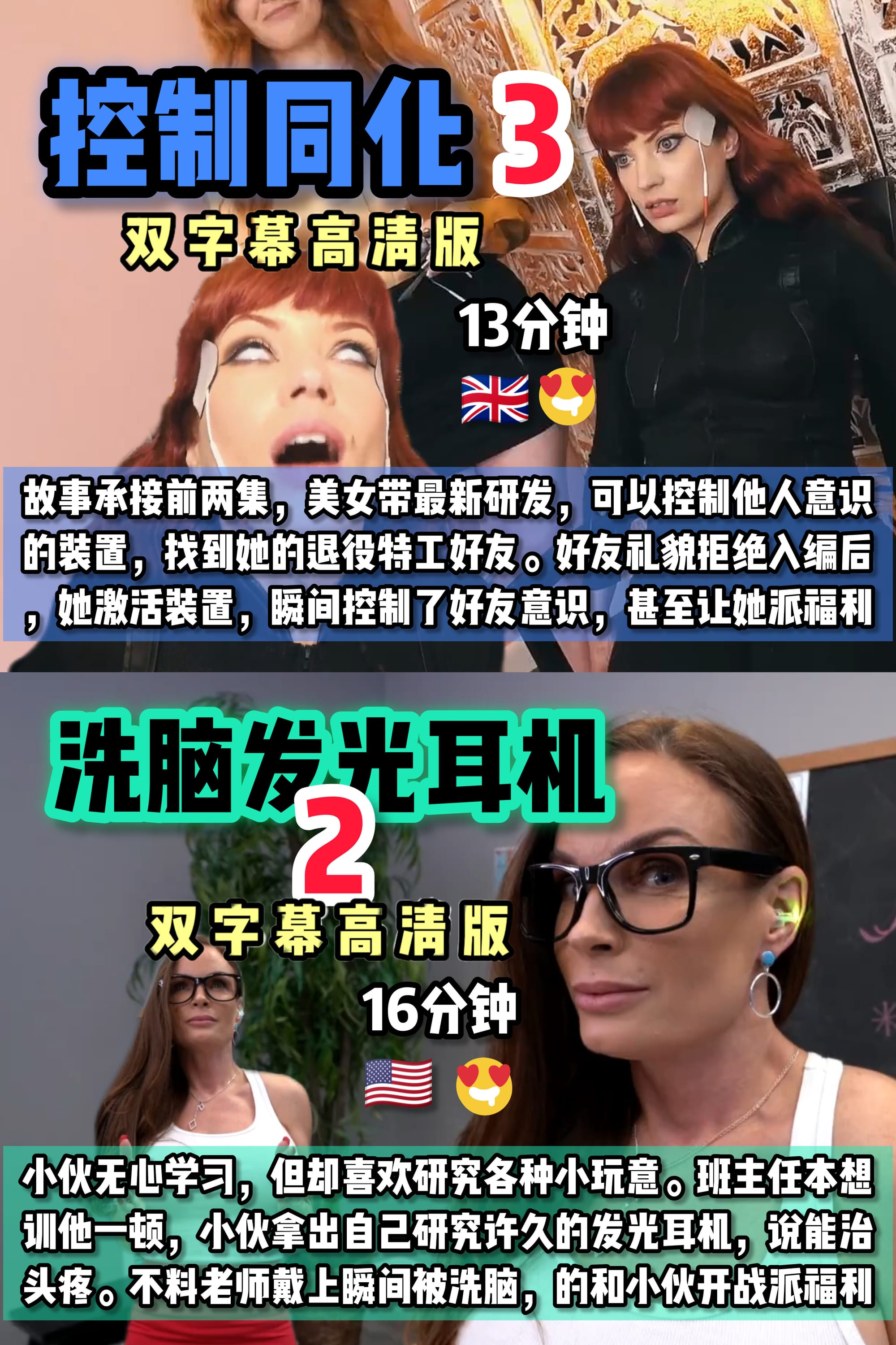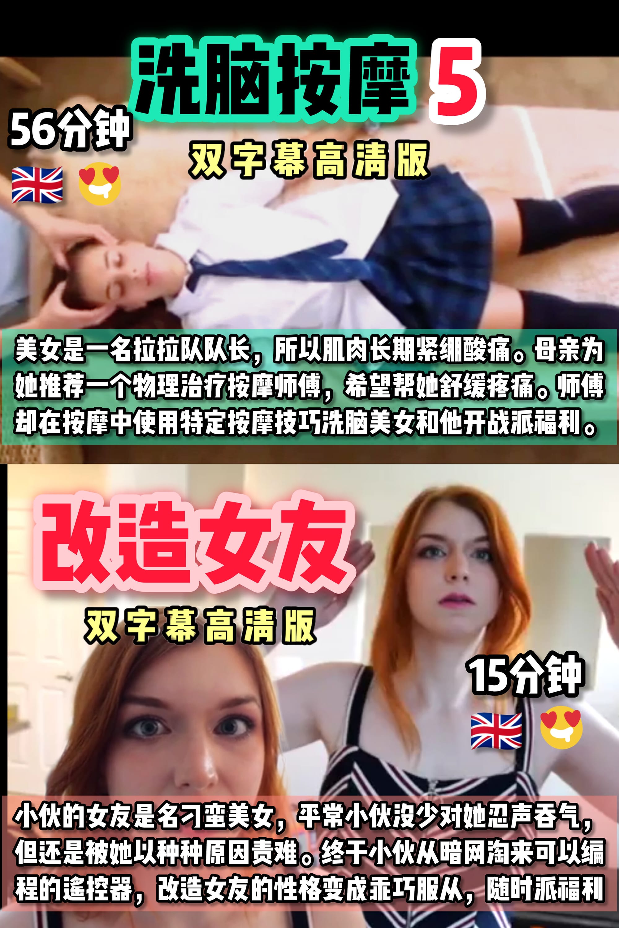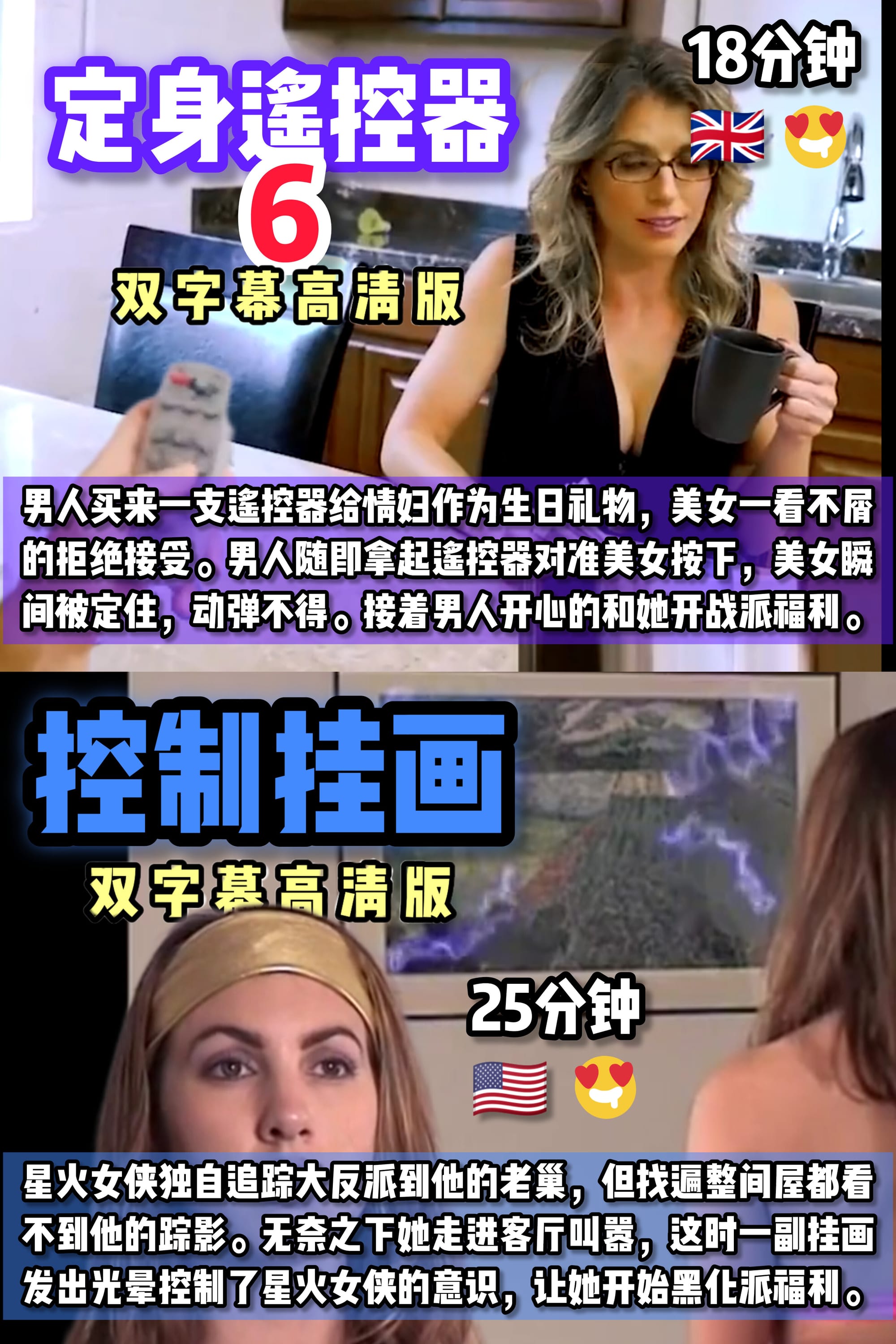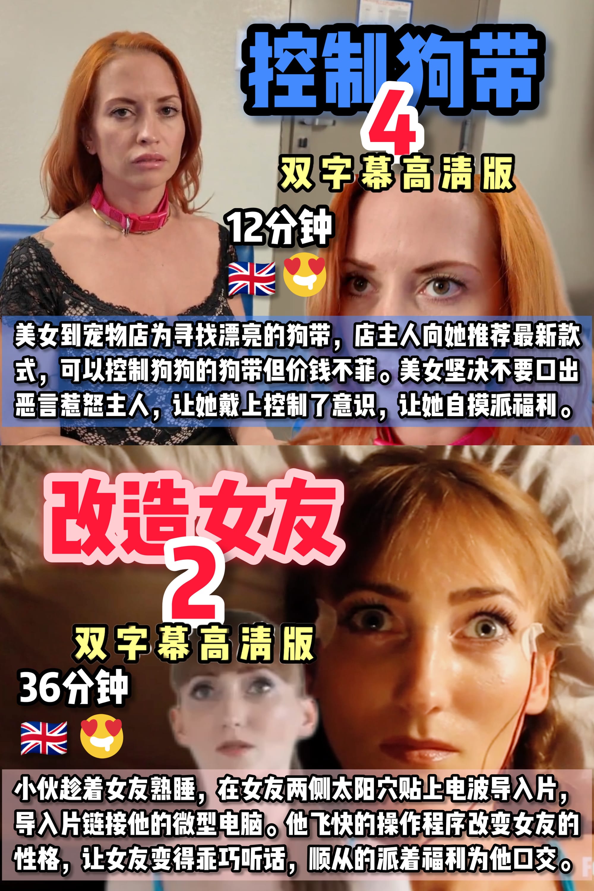 小伙的女友是一名刁蛮美女,平常小伙没少对她忍声吞气, 但还是被她以种种原因责难。终于小伙从暗网淘来可以编 程的遥控器,改造女友的性格变成乖巧服从,随时派福利 (15分钟)