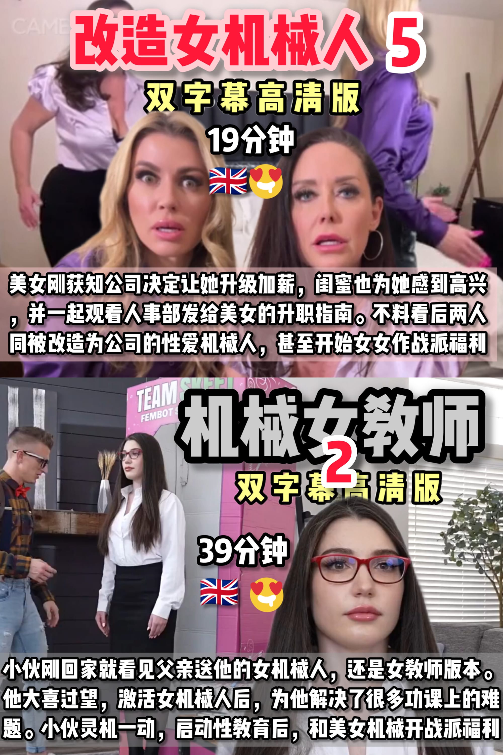 美女刚获知公司决定让她升级加薪,闺蜜也为她感到高兴 ,并一起观看人事部发给美女的升职指南。不料看后两人 同被改造为公司的性爱机械人,甚至开始女女作战派福利 (19分钟)